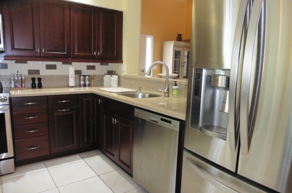 - Granite counter tops and stainless steel appliances in the kitchen