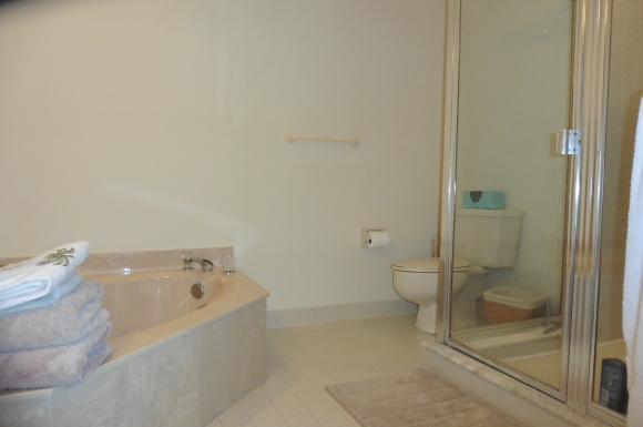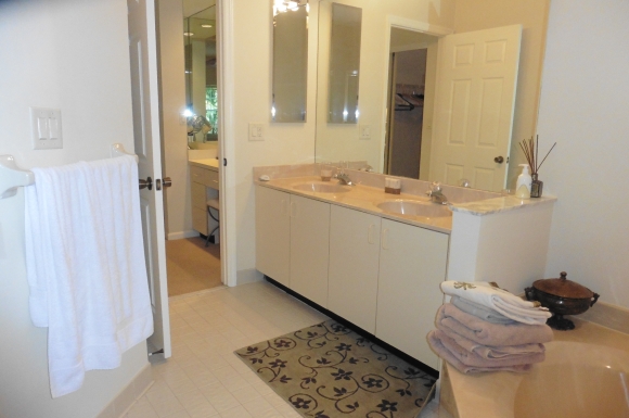 - Master bathroom has spacious counter tops, stand up shower and a separate tub