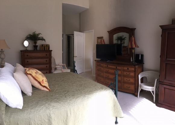 • Downstairs master bedroom has a queen sized bed, flat screen TV, walk in closets