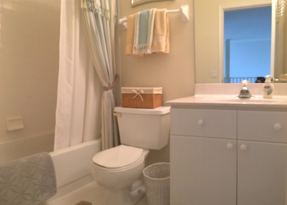• Guest bathroom has a shower/tub combo