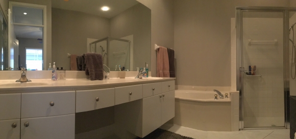 - Master bathroom has a large tub and a walk in shower