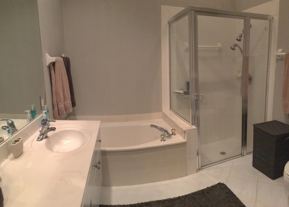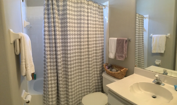 - Guest bathroom has a shower/tub combo