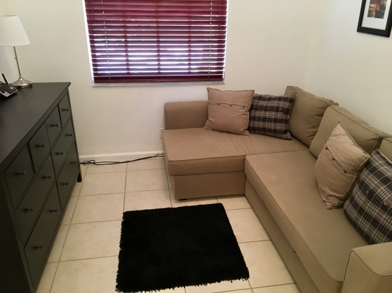 - Den off the kitchen with big dresser and a pull out couch with a privacy door.