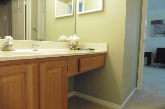 - Master bathroom has a walk in shower and long vanity area