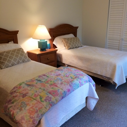 - Guest bedroom with 2 twin beds, dresser and closet storage