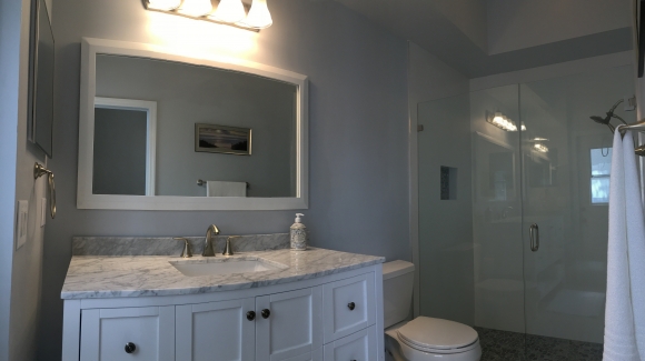 - Renovated guest bathroom with a walk in shower