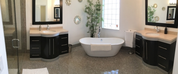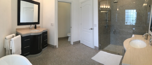 - Renovated master bathroom with dual vanity area, tub and a walk in shower